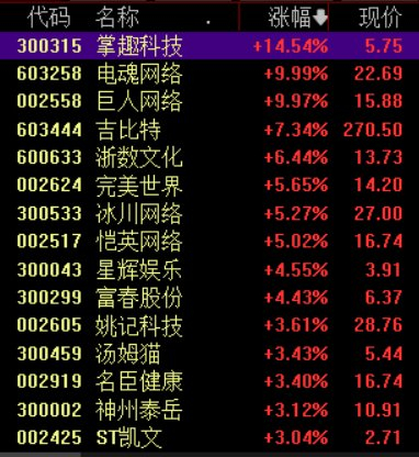 截至发稿,巨人网络、电魂网络涨停,掌趣科技涨超14%,浙数文化、完美世界、吉比特等跟涨。