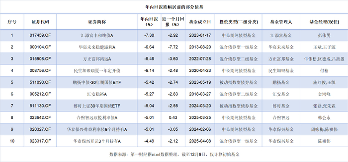 拉长时间看,今年以来债基整体表现承压。全市场有446只债券基金年内亏损,其中45只基金的年内跌幅超2%;更有126只产品的年内回报在一个月内由盈转亏。目前,汇添富丰和纯债A、华宸未来稳健添利A、方正富邦鸿远A、民生加银瑞夏一年定开债等产品的年内跌幅超过6%。
