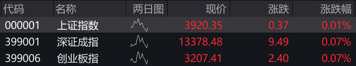 沪指高开0.01%,深成指高开0.07%,创业板指高开0.07%。