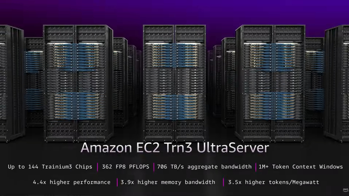 在本次re:Invent上,这一自研路线迎来了里程碑式的代际飞跃——基于Amazon Trainium 3的Amazon EC2 Trn3 UltraServers服务器正式落地。