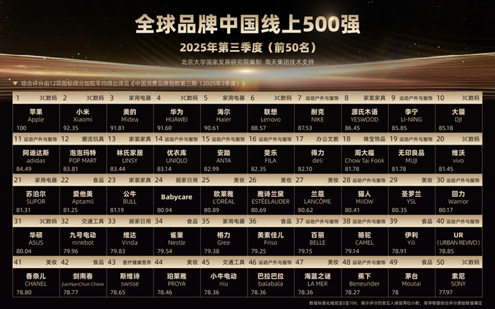 最新“全球品牌中国线上500强”季度榜单发布,真实消费指标为品牌发展提供科学参考