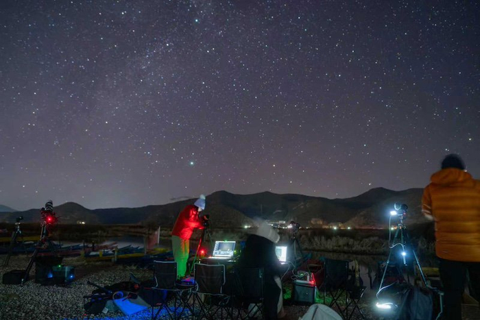 “今年这次双子座流星雨的流量非常好,月相恰逢农历二十五下弦月,月光对观测没有什么影响。即使是冬天,我们也会选择到野外直播。这次到云南泸沽湖,是因为光污染比较少,那里的地形开阔,能看到更多流星。”王晓菲说。