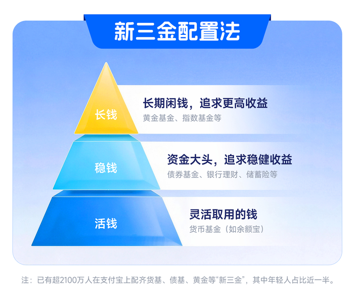 蚂蚁财富平台数据显示,截至2025年11月底,已有超过2100万用户同时配置了属于自己的“新三金”,其中年轻人占比近一半。