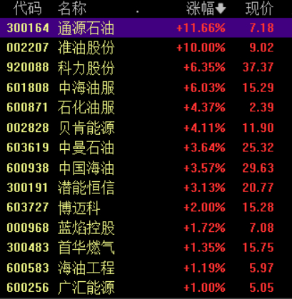 具体来看,油气股盘中拉升,准油股份涨停,通源石油涨超10%。