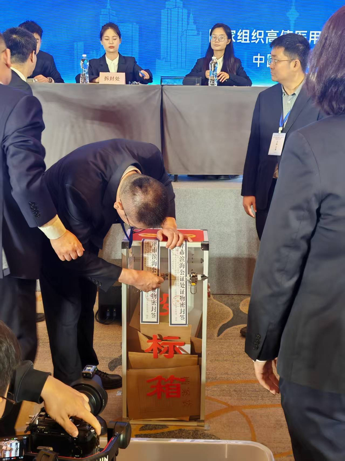 公证员现场开启投标箱/郭晋晖摄本次集采坚持“稳临床,保质量,反内卷,防围标”的原则,首次引入“锚点价”防止非理性报价,并设置了规则二、规则三双重复活机制,引导更多企业以适宜价格供应,提高中选率,丰富临床选择。