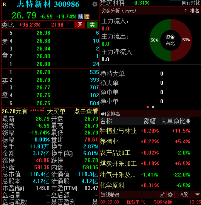 个股方面,志特新材复牌低开超19%,公司公告,公司业务不涉及AI应用等领域。
