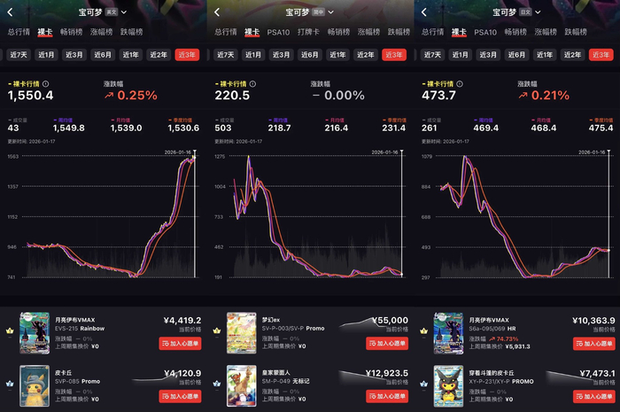 近日,有宝可梦集换式卡牌的买家向第一财经记者表示,宝可梦IP体系下部分稀有卡成交价在2025年快速上涨,且1月还维持着不低的涨势,“现在是一天一个价,涨价的速度就连卡牌交易软件数据收录都不一定跟得上。”宝可梦集换式卡牌在二级市场再掀波澜的同时,投资加速涌入卡牌这一高毛利的赛道。