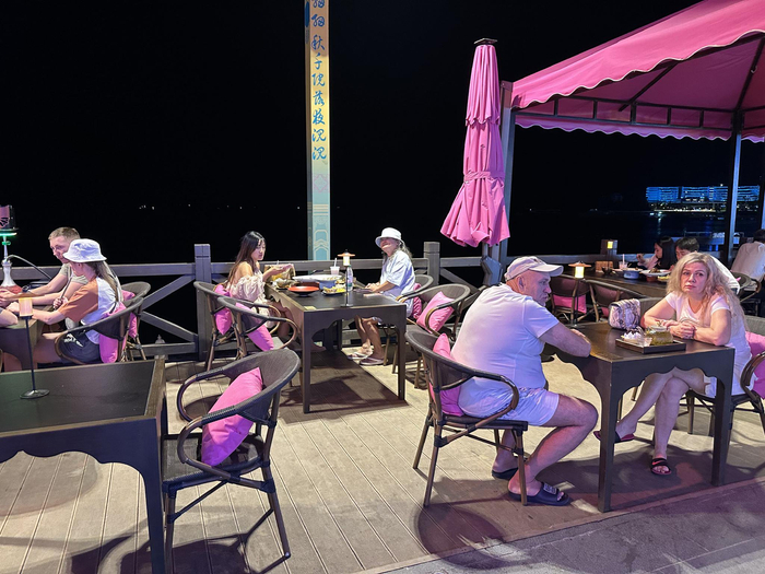 在三亚,第一财经记者看到旅游度假区域内几乎所有餐厅都写着俄语的招牌,还有一些餐厅晚间会有俄罗斯歌手驻场表演。赵奇是一家海鲜餐厅的老板,他告诉第一财经记者,每天晚上会有大量外籍游客来店内用餐,以俄罗斯游客为主。“我们的店招和餐牌上都写有俄语,而且我还雇了一个俄语翻译,每晚用餐高峰时来为餐厅做翻译服务和招揽客人,效果非常好。封关一个月以来,来我店吃饭的客人多了20%~30%左右。”在接受记者采访的10分钟内,俄语翻译已为赵奇的餐厅招揽了2桌俄罗斯游客。