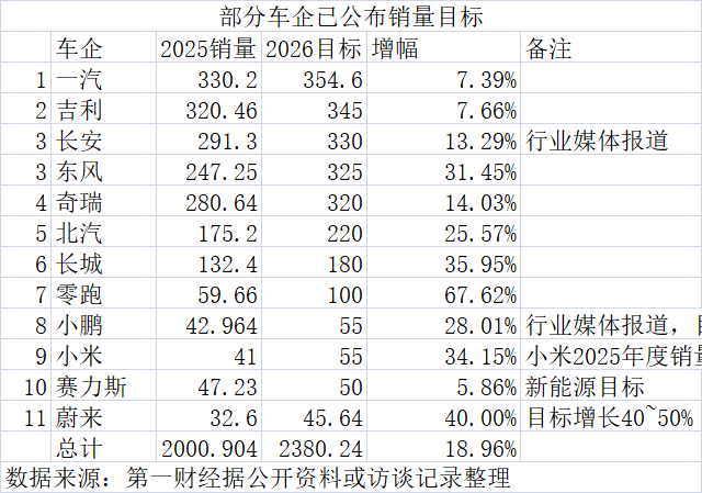 随着2026年车市大幕开启,主流车企陆续披露新年的销量目标。