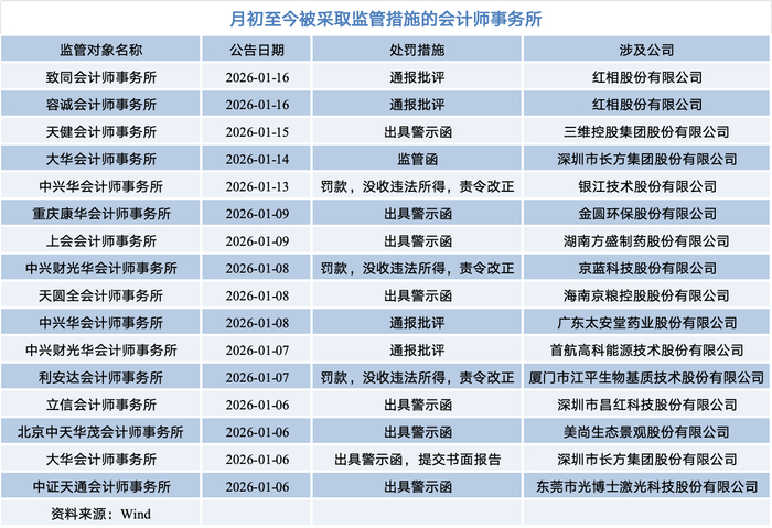 另据Wind统计,按公告日期,本月以来已有16家会计所被采取监管措施。