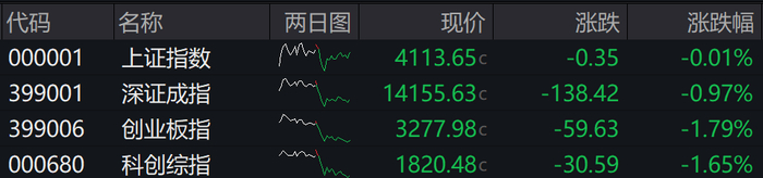 1月20日,A股三大指数高开低走,创业板指盘中一度跌超2%。截至收盘,沪指跌0.01%,深成指跌0.97%,创业板指跌1.79%,科创综指跌1.65%。