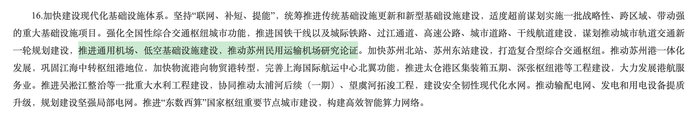 据苏州政府官网,中国共产党苏州市第十三届委员会第十一次全体会议,就制定苏州市国民经济和社会发展第十五个五年规划提出建议。其中在“加快建设现代化基础设施体系”部分提到“推进通用机场、低空基础设施建设,推动苏州民用运输机场研究论证”。