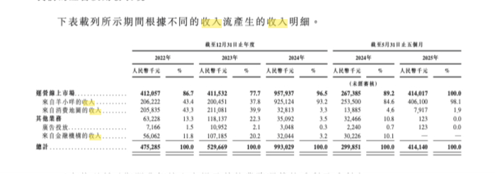 其中,羊小咩平台是其收入增长的核心驱动力。招股书显示,2024年、2025年前五个月,羊小咩收入分别占集团总收入的约93.2%及98.1%。