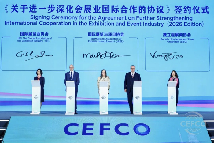 1月22日,2026年中国会展经济国际合作论坛(CEFCO论坛)在武汉开幕。会上,中国贸促会与国际展览业协会(UFI)等四家国际会展组织续签合作协议,武汉市集中签约10个国际化会展项目,推动中国会展企业“走出去”与国际会展资源“引进来”,实现会展行业的“双向奔赴”。