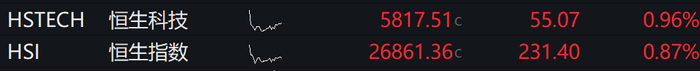 恒生指数高开0.87%,恒生科技指数涨0.96%。泡泡玛特涨逾4%,阿里巴巴涨逾3%,京东集团、阿里健康涨逾2%。