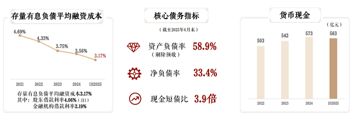 截至2025年6月末,建发国际资产负债率(扣除预收账款)为58.9%,净负债比率低至33.4%,现金短债比接近4倍,充足的现金储备如同“压舱石”,既保障了公司在市场波动中的安全运营,更为获取优质土地资源提供了坚实支撑。