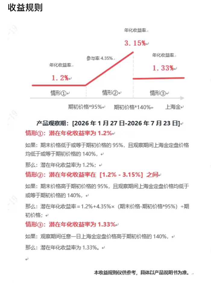 然而,看似美好的收益背后却暗藏玄机。不同产品在挂钩标的、收益结构设计上千差万别,实际获得高收益的概率也大相径庭。投资者在追逐黄金热的同时,更需要冷静审视产品条款中的收益实现条件和潜在风险。