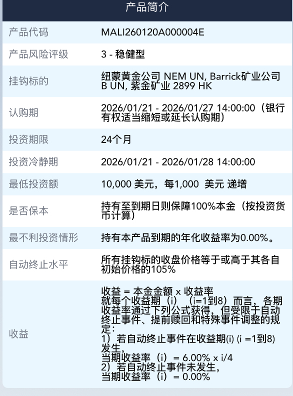 挂钩指数或衍生品的结构则更为复杂,潜在收益空间也更大。以渣打银行某款挂钩环球金矿主题的结构性存款产品为例,投资期限为24个月,其收益与纽蒙特黄金公司、紫金矿业等多家上市矿业公司股价表现挂钩,预期年化收益率区间为0%至12%。