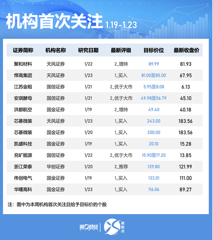 机构本周首次关注47只个股,11股被给予目标价。