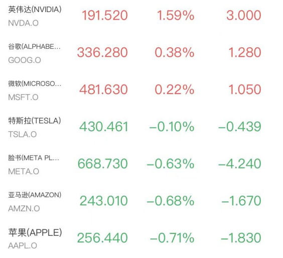 明星科技股分化,英伟达涨1.59%,谷歌涨0.38%,微软涨0.22%,特斯拉跌0.10%,Meta,亚马逊和苹果跌逾0.6%,苹果跌0.7%,甲骨文跌1.20%。
