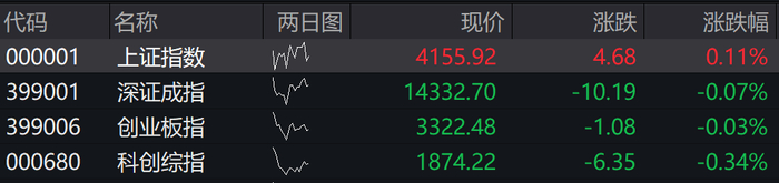 沪指涨0.11%,深成指跌0.07%,创业板指跌0.03%。科创综指跌0.34%。