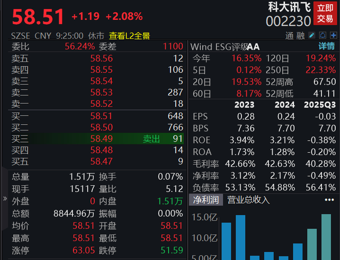 科大讯飞高开2.08%,公司2025年净利同比预增40%-70%,人工智能应用规模化落地不断取得成效。