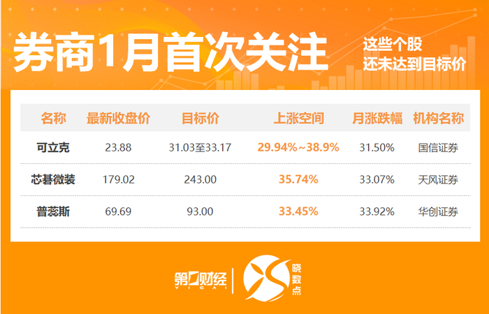 可立克的最大涨幅空间超38%,该股最新收盘价报23.88元,国信证券在1月27日发布的研报中给出了31.03至33.17元的目标价。