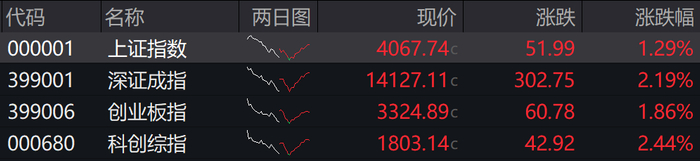 2月3日,A股三大指数震荡上行,截至收盘,沪指涨1.29%,深成指涨2.19%,创业板指涨1.86%。科创综指涨2.44%。