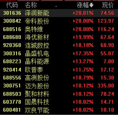 具体来看,光伏设备概念集体爆发,帝科股份、海优新材等多股涨停。