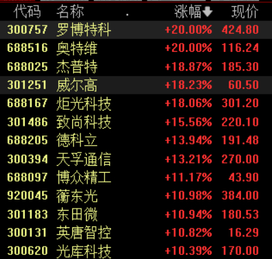 CPO等算力硬件股延续涨势,罗博特科、天通股份等涨停。