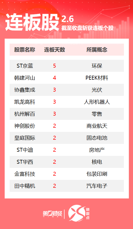零售股杭州解百3连板,固态电池板块皇庭国际2连板。一图速览今日连板股>>