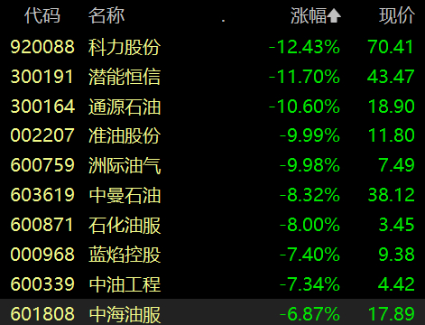 油气板块调整,科力股份跌超12%,准油股份、洲际油气跌停。