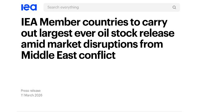 当地时间3月11日,国际能源署(IEA)宣布了其历史上最大规模的石油储备释放计划,共释放4亿桶石油储备。
