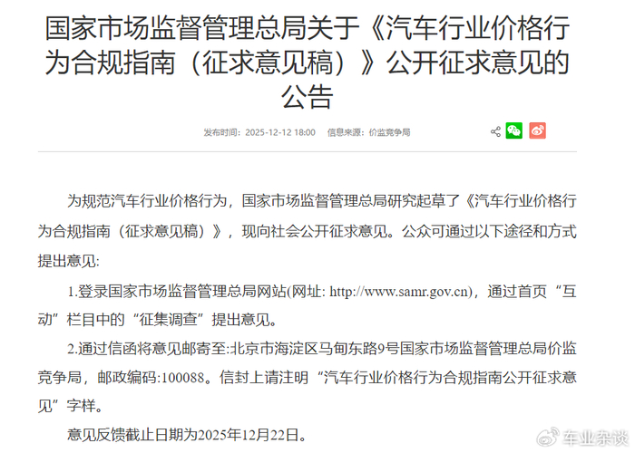 这意味着,大家一通努力干活,日子却更难过。因此,汽车行业从上到下、从前到后一致认为,“价格战”不可取,国家市场监管总局发布的《汽车行业价格行为合规指南(征求意见稿)》,也得到了行业响应。