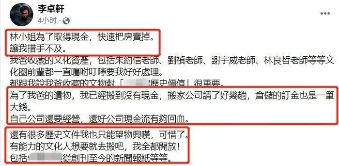 李坤城离世近9个月,他的亲生儿子花费大量积蓄处理父亲生前收藏,小妻子林靖恩却第一时间卖掉了房产,拿着钱住进了酒店,完全不在乎他的收藏和遗愿,更是一步步沦落到流落街头的地步。