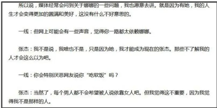 张杰曾经回应过外界质疑他靠谢娜上位一事,他不喜欢被说吃软饭,不过大方承认自己依赖谢娜,表示因为有谢娜,他的人生才会圆满和美好,是因为谢娜,他才能成为现在的张杰。