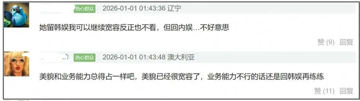 沈佳润官宣在韩国出道后,踏实跑打歌舞台,因中国星二代身份及舞台唱跳真唱等特征吸引了一大批乐子人,不少路人认为她真唱实力比韩娱五代、六代女团强,不走捷径在外打拼的努力人设稳住了。而今来看,只是另一种“出口转内销”的形式罢了。