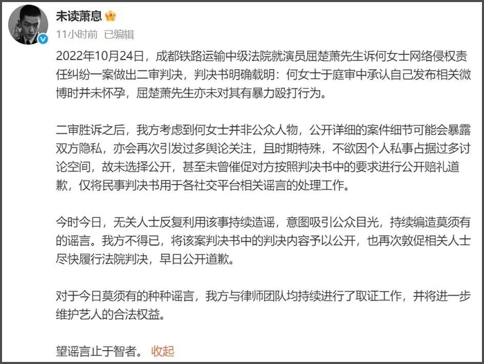 随后屈楚萧工作室还公开胜诉书,似乎想以此来澄清屈楚萧没有家暴,但没想到名誉权败诉的前女友看不下去了,直接出来怒骂屈楚萧故意找别的事当挡箭牌,司晓迪爆料的被打女生另有其人,不是判决书中的人。