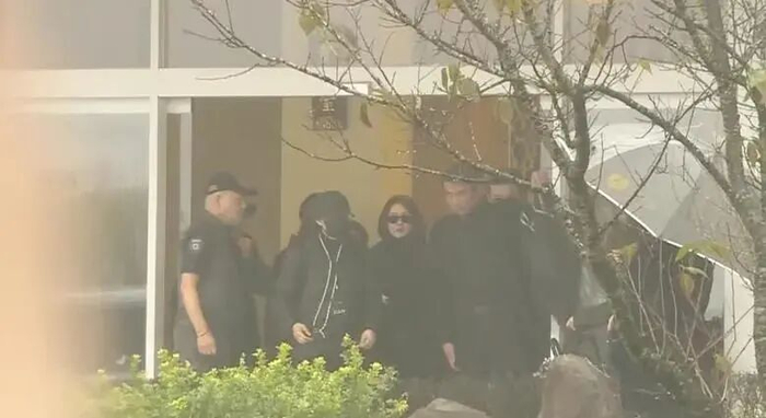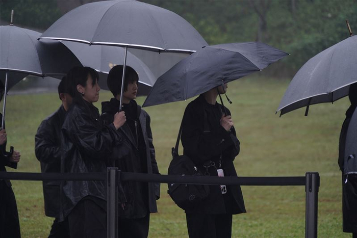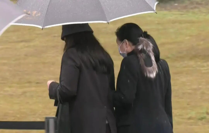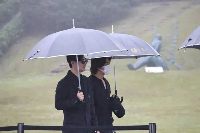 临近开场,嘉宾陆续入场,S妈和女婿具俊晔一起进场,小雨淅沥,二人各自打了一把伞,也许是语言不通,S妈和具俊晔几乎没有交流。