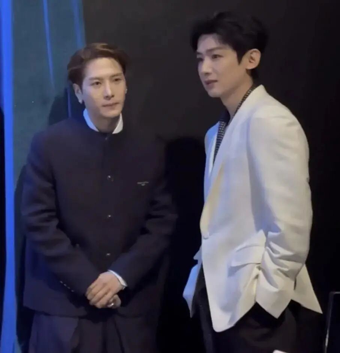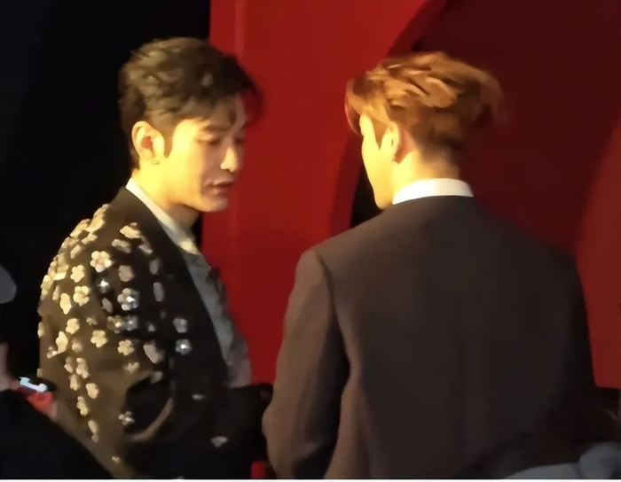 另一边,白敬亭和王嘉尔也是多年老友难得一见,他们伸出双手拥抱对方。候场的时候,两个人就站在角落,一边等着出场,一边热聊。只是,两个人的状态却相差极大,王嘉尔双手紧扣,姿态紧张;白敬亭双手插兜,姿态松弛。