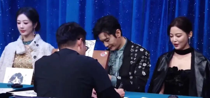 如果说魏大勋和白敬亭等人是局限于熟人作伴的社交I人,那么曾舜晞和黄晓明则是名利场上当之无愧的社交达人,两个人在后台都格外忙碌。