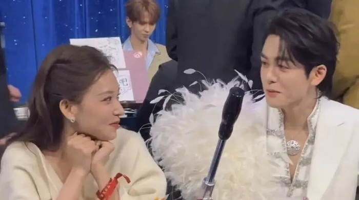 黄晓明在后台也是忙个不停,见到王嘉尔,要聊一聊;见到时代少年团的弟弟们,也要凑在一起说说话。面对交集不多的白鹿,黄晓明展现出了绅士的一面,上前为白鹿拉椅子。之后,他又和杨紫坐到了一起,开始热聊。