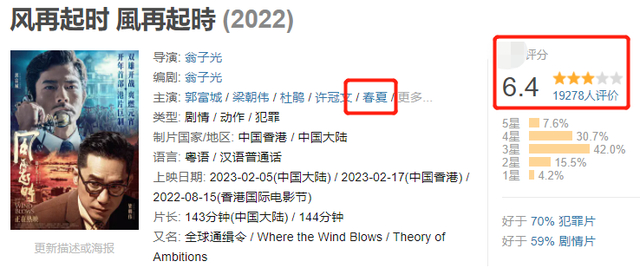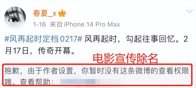 譬如电影《风再起时》,由梁朝伟、郭富城主演,春夏客串出演,本来因为春夏不当言论风波,电影片方在宣传过程中把她除名了。