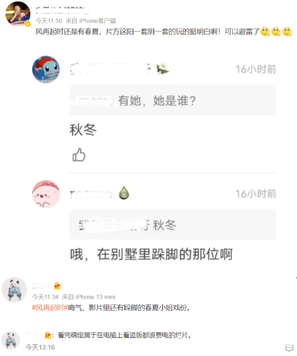 没想到最后《风再起时》还搞起了“诈骗”,当面一套背后一套,根本没有删除春夏的镜头,被误导进了影院的观众看完直呼晦气。