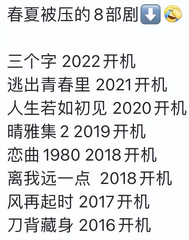 实际上,从春夏过往资源和参演作品性质上,也能看出一些端倪,网友简单总结了一下,她竟然前前后后拍摄了高达8部艰难播出或者上线无望的作品,几乎每一部都有雷点。