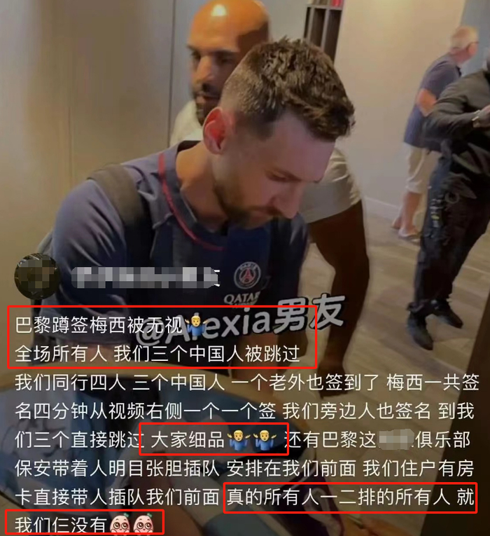 等到梅西单独出席日本发布会并为日本行开启训练之后,越来越多人清醒了,有一位曾经在巴黎见到梅西的球迷,想起了梅西全场签名但偏偏跳过三个中国球迷的事。