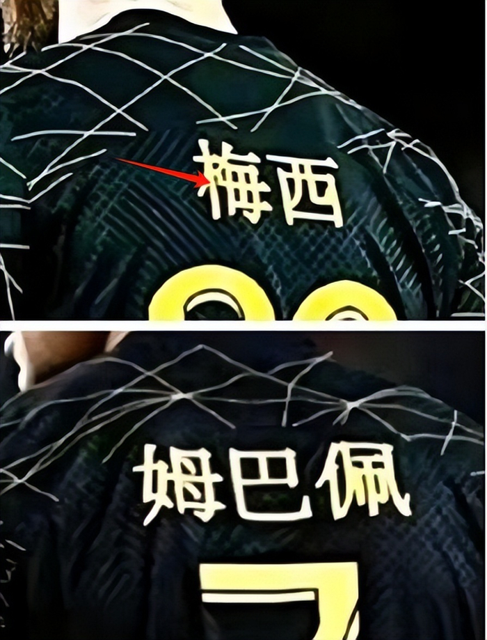 ——梅西就出过一款春节球衣,但是细看球衣背后的文字,竟然根本不是中文,而是日文。