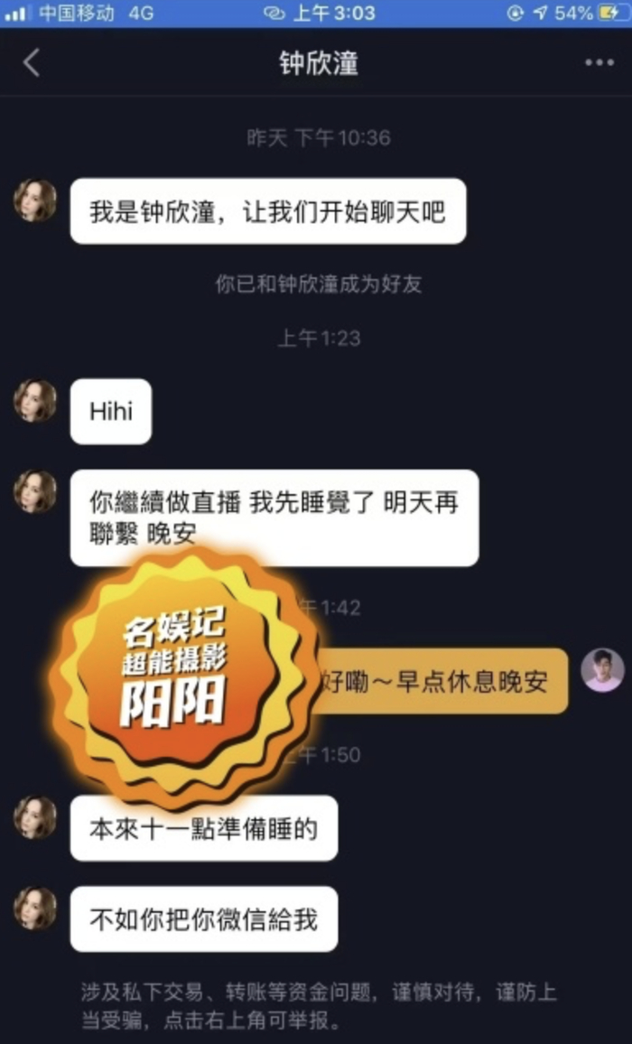 刷完礼物之后,阿娇就主动加了余衍隆的好友,两个人就这样开始有了联系。