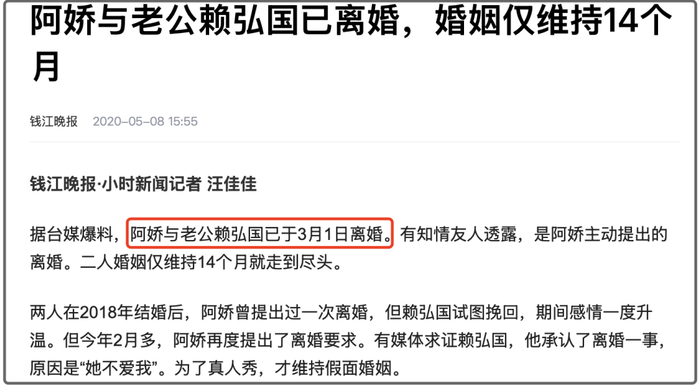 12月16日,狗仔出面爆料阿娇知三当三,瞬间引起网友热议,而随着知三当三风波持续发酵,有网友根据时间线发现,阿娇跟这个小鲜肉在一起,竟然是无缝衔接与赖弘国离婚。