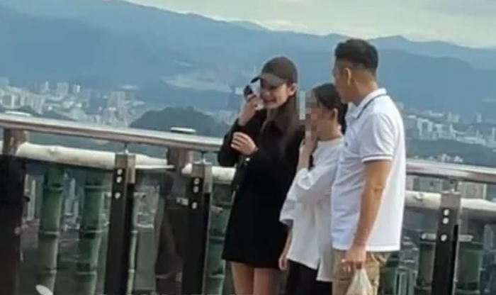 马筱梅走在前面探路,三人登顶后先在景观台上拍了合照,然后马筱梅又识趣地帮小玥儿跟爸爸拍了合影,画面看着十分温馨。